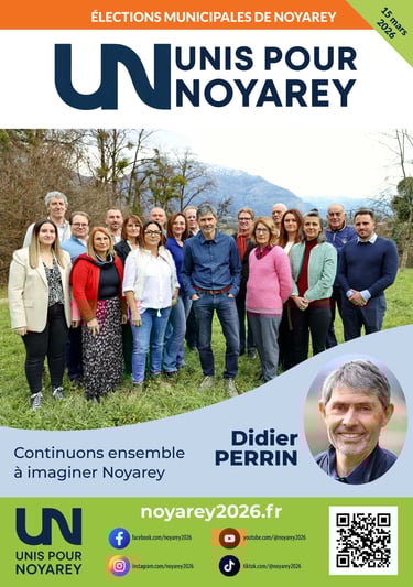 Beaucoup reste encore à faire pour notre village et c’est tous ces chantiers que nous souhaitons poursuivre ou ouvrir avec l’équipe « Unis pour Noyarey ». Notre programme est fait de projets réalistes et de réponses proportionnées aux problèmes que nous devrons gérer, et cela avec une maitrise des finances que nous souhaitons maintenir sans alourdir la contribution de chaque nucérétains.